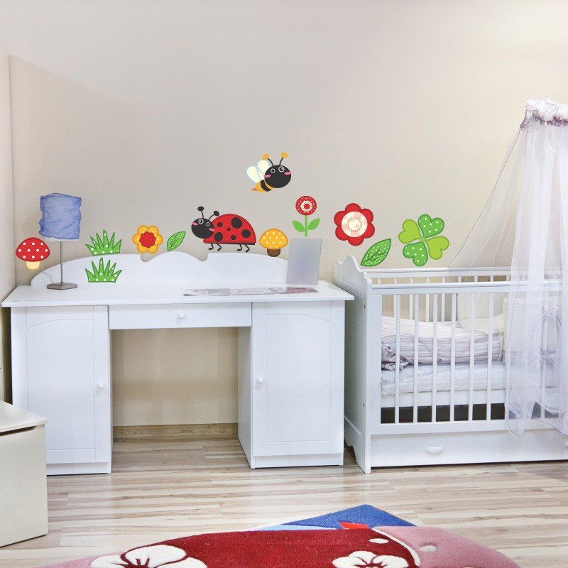 Este modelo, Adesivo de Parede Jardim da joaninha, pode ser usado em praticamente qualquer superfície lisa, pode ser utilizado para decorar quarto infantil, sala, sala de estar, sala de tv, cozinha, hall de entrada, quarto de casal, bar, espaço gourmet, cabeceira de cama, escritório, banheiro, box de banheiro, etc...