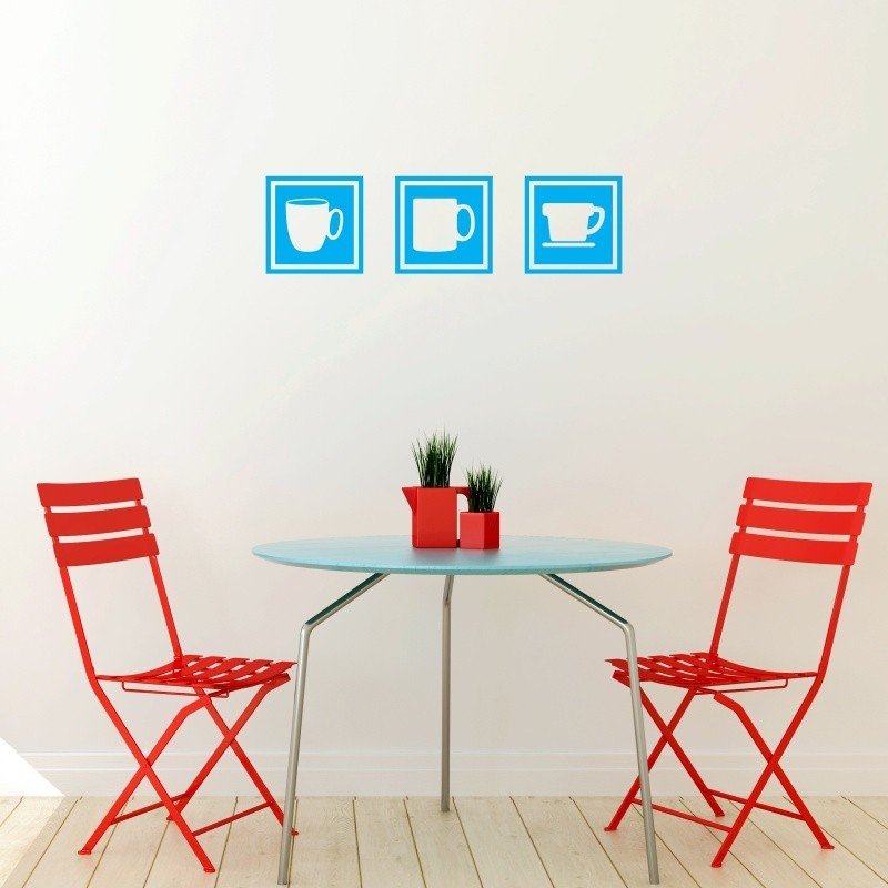 Este modelo, Adesivo de Parede Kit Quadro Xícaras, pode ser usado em praticamente qualquer superfície lisa, pode ser utilizado para decorar quarto infantil, sala, sala de estar, sala de tv, cozinha, hall de entrada, quarto de casal, bar, espaço gourmet, cabeceira de cama, escritório, banheiro, box de banheiro, etc...