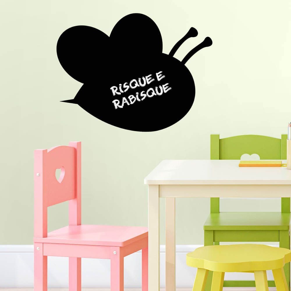 Este modelo, Adesivo de Parede Lousa Abelha, pode ser usado em praticamente qualquer superfície lisa, pode ser utilizado para decorar quarto infantil, sala, sala de estar, sala de tv, cozinha, hall de entrada, quarto de casal, bar, espaço gourmet, cabeceira de cama, escritório, banheiro, box de banheiro, etc...
