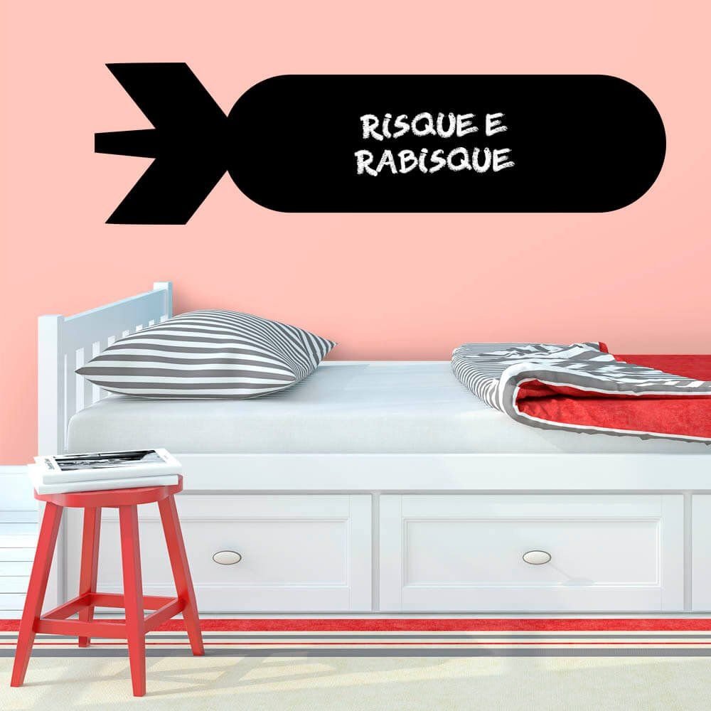 Este modelo, Adesivo de Parede Lousa Bomba Atômica, pode ser usado em praticamente qualquer superfície lisa, pode ser utilizado para decorar quarto infantil, sala, sala de estar, sala de tv, cozinha, hall de entrada, quarto de casal, bar, espaço gourmet, cabeceira de cama, escritório, banheiro, box de banheiro, etc...