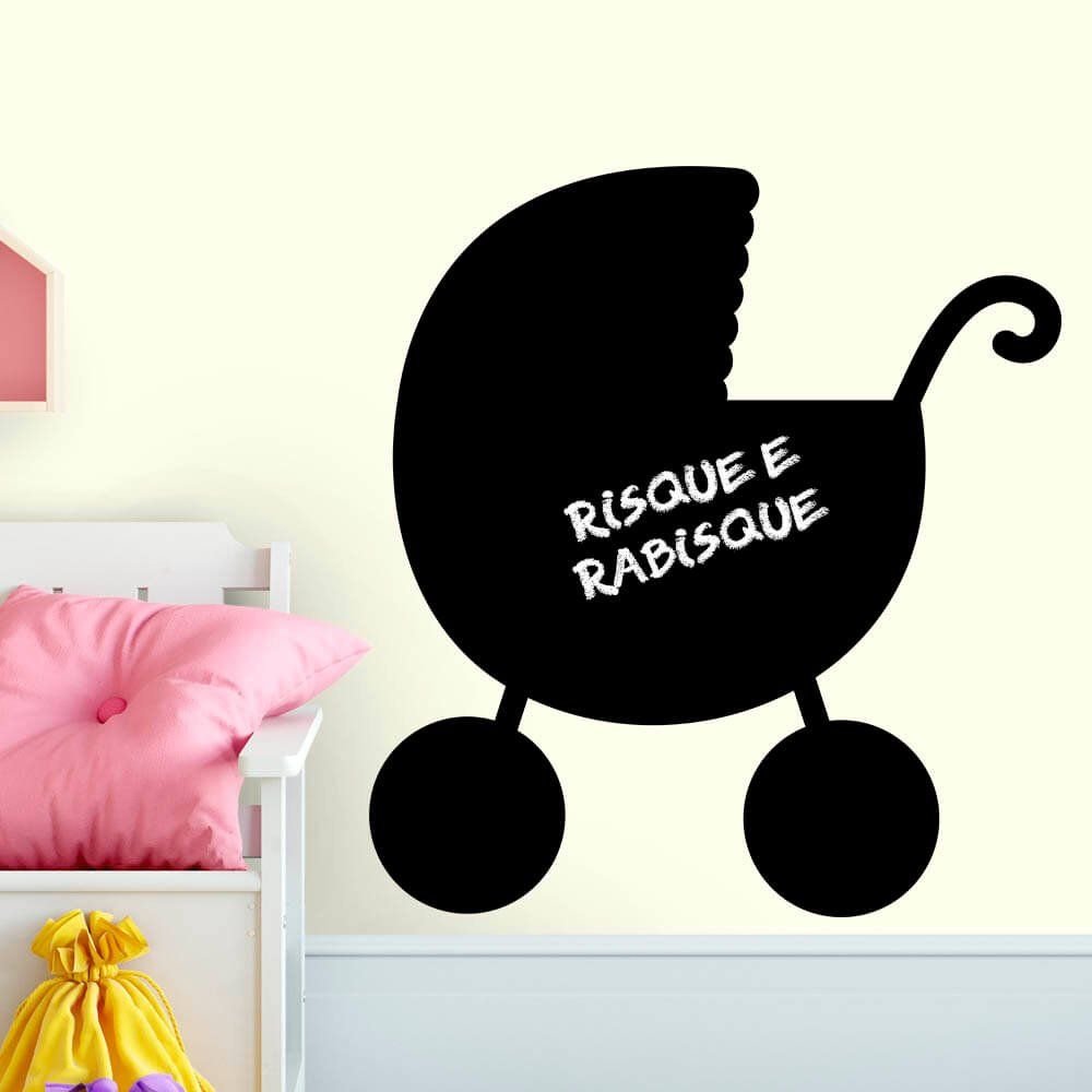 Este modelo, Adesivo de Parede Lousa Carrinho de Bebê, pode ser usado em praticamente qualquer superfície lisa, pode ser utilizado para decorar quarto infantil, sala, sala de estar, sala de tv, cozinha, hall de entrada, quarto de casal, bar, espaço gourmet, cabeceira de cama, escritório, banheiro, box de banheiro, etc...