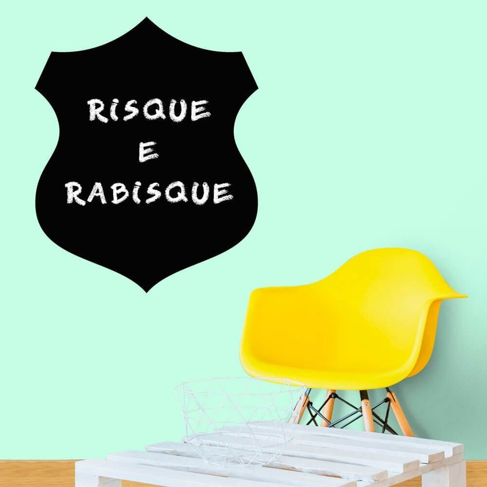 Este modelo, Adesivo de Parede Lousa Escudo 3, pode ser usado em praticamente qualquer superfície lisa, pode ser utilizado para decorar quarto infantil, sala, sala de estar, sala de tv, cozinha, hall de entrada, quarto de casal, bar, espaço gourmet, cabeceira de cama, escritório, banheiro, box de banheiro, etc...