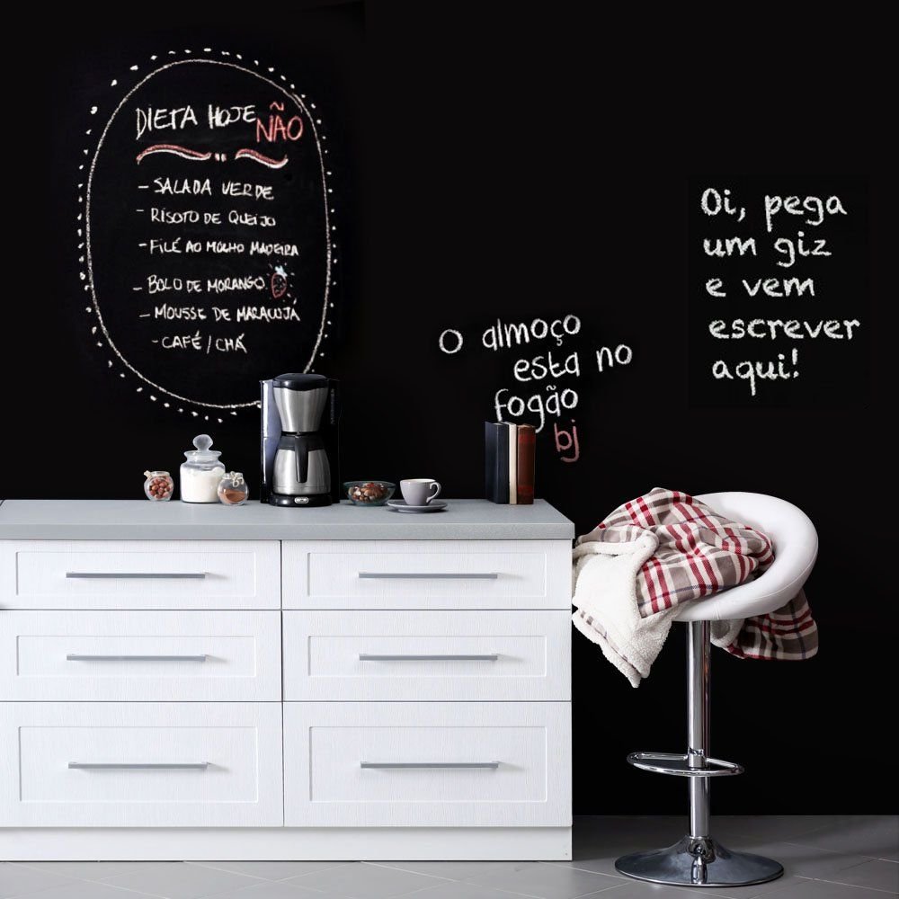 Este modelo, Adesivo de Parede Lousa por Metro, pode ser usado em praticamente qualquer superfície lisa, pode ser utilizado para decorar quarto infantil, sala, sala de estar, sala de tv, cozinha, hall de entrada, quarto de casal, bar, espaço gourmet, cabeceira de cama, escritório, banheiro, box de banheiro, etc...