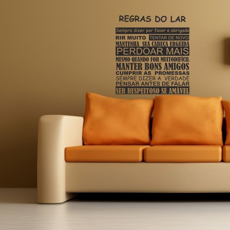 Este modelo, Adesivo de Parede Regras do Lar, pode ser usado em praticamente qualquer superfície lisa, pode ser utilizado para decorar quarto infantil, sala, sala de estar, sala de tv, cozinha, hall de entrada, quarto de casal, bar, espaço gourmet, cabeceira de cama, escritório, banheiro, box de banheiro, etc...