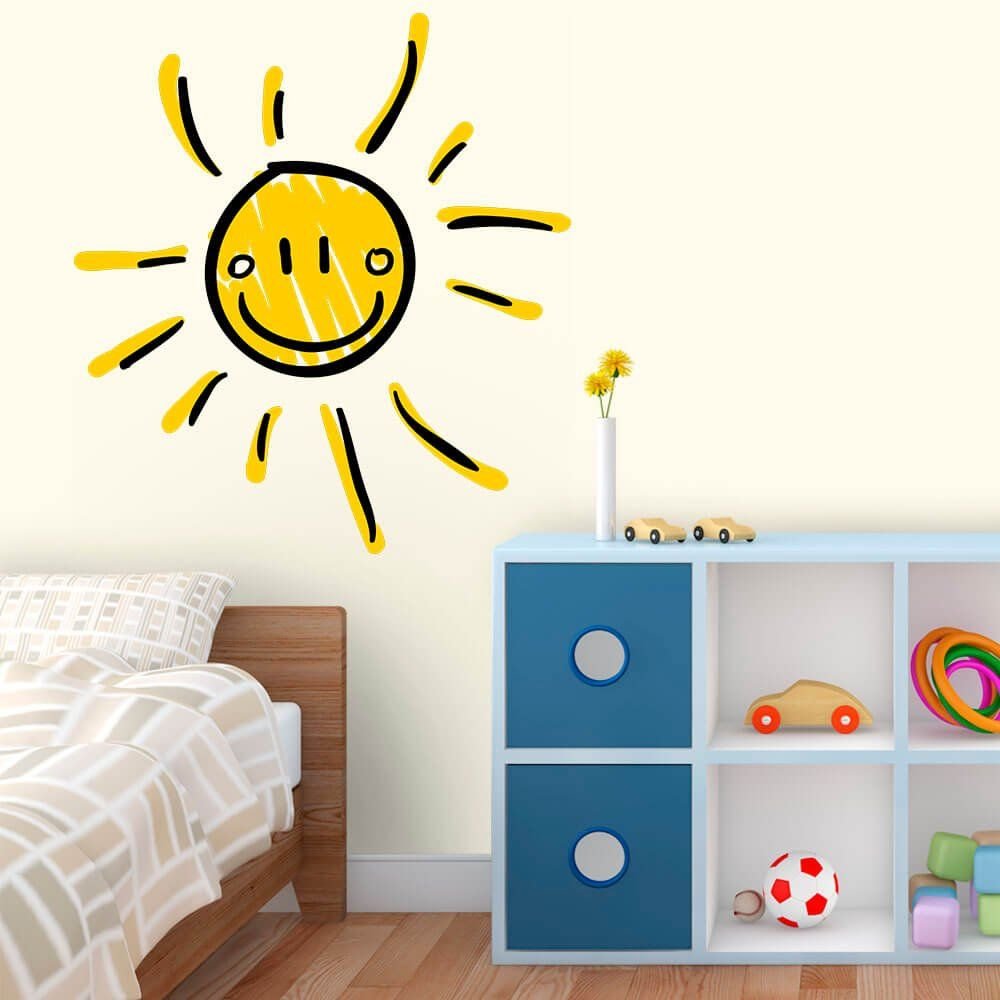 Este modelo, Adesivo de Parede Sol Desenho, pode ser usado em praticamente qualquer superfície lisa, pode ser utilizado para decorar quarto infantil, sala, sala de estar, sala de tv, cozinha, hall de entrada, quarto de casal, bar, espaço gourmet, cabeceira de cama, escritório, banheiro, box de banheiro, etc...