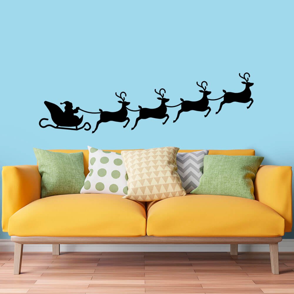 Este modelo, Adesivo de Parede Trenó com Renas, pode ser usado em praticamente qualquer superfície lisa, pode ser utilizado para decorar quarto infantil, sala, sala de estar, sala de tv, cozinha, hall de entrada, quarto de casal, bar, espaço gourmet, cabeceira de cama, escritório, banheiro, box de banheiro, etc...