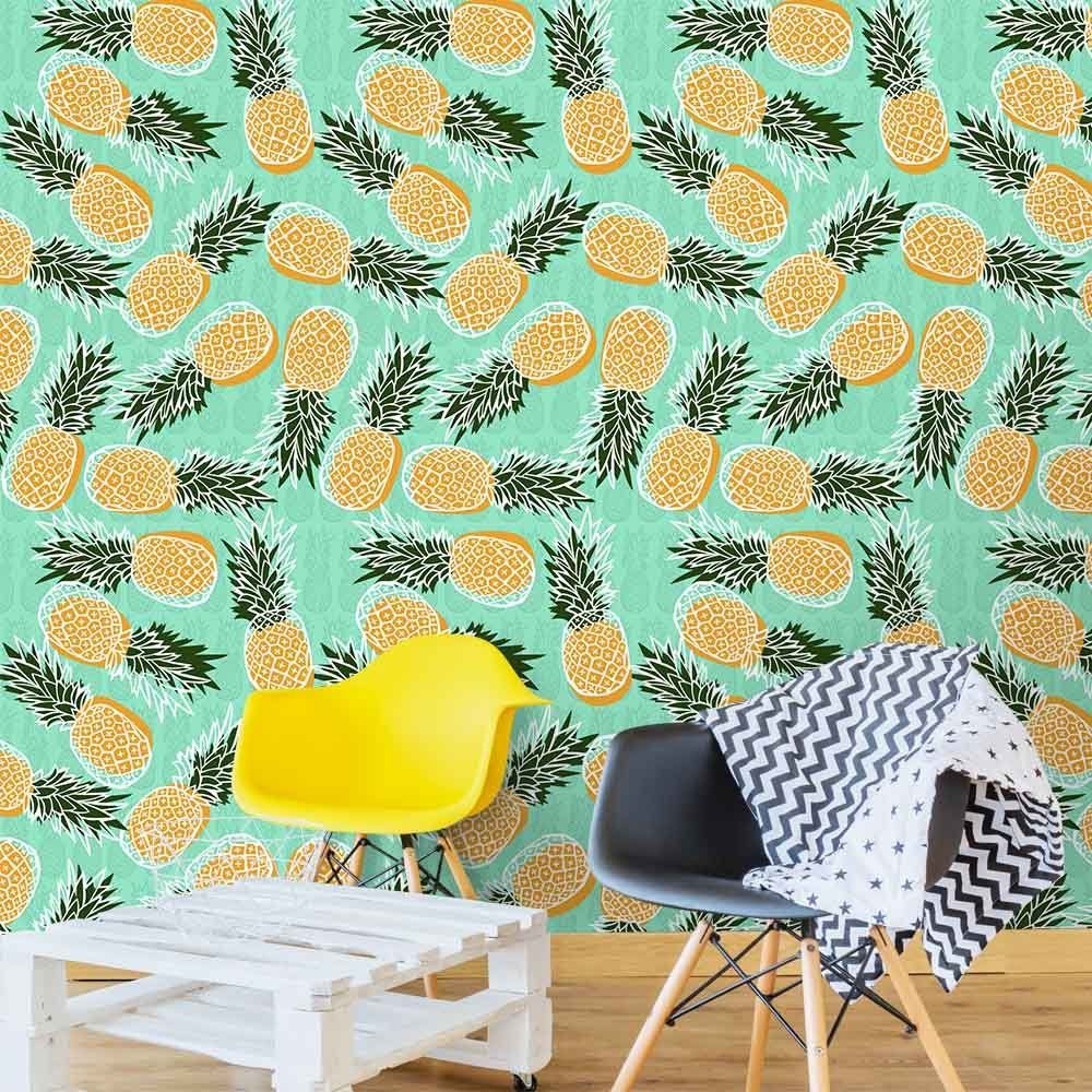 O Papel de Parede Abacaxi Urbano é fabricado em adesivo vinil fosco 3M, autocolante e com excelente qualidade de impressão. Não precisando de cola.