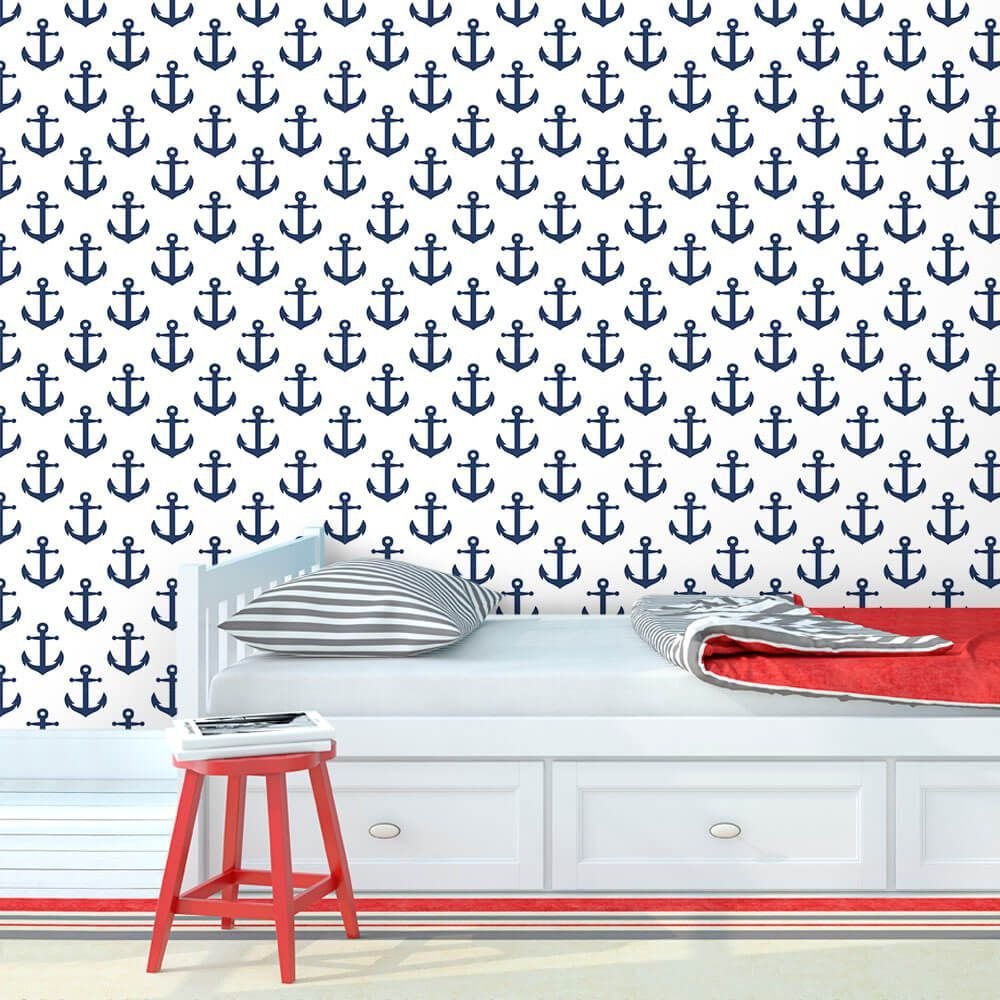 Nosso Papel de Parede Âncora Navy pode ser aplicado em qualquer superfície lisa: Paredes (Tinta Acrílica, Acetinada, Latex, com Massa Corrida* e Gesso*), Portas, Espelhos, Vidros, Móveis, Marmore, etc. Sempre em local limpo. Se for aplicar em gesso ou massa corrida é necessário estar pintado.