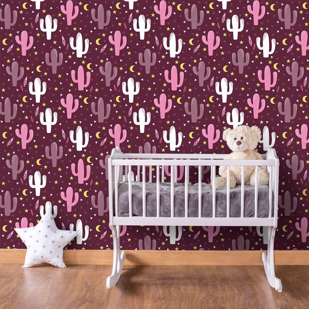 O Papel de Parede Cactos Granberry é fabricado em adesivo vinil fosco 3M, autocolante e com excelente qualidade de impressão. Não precisando de cola.