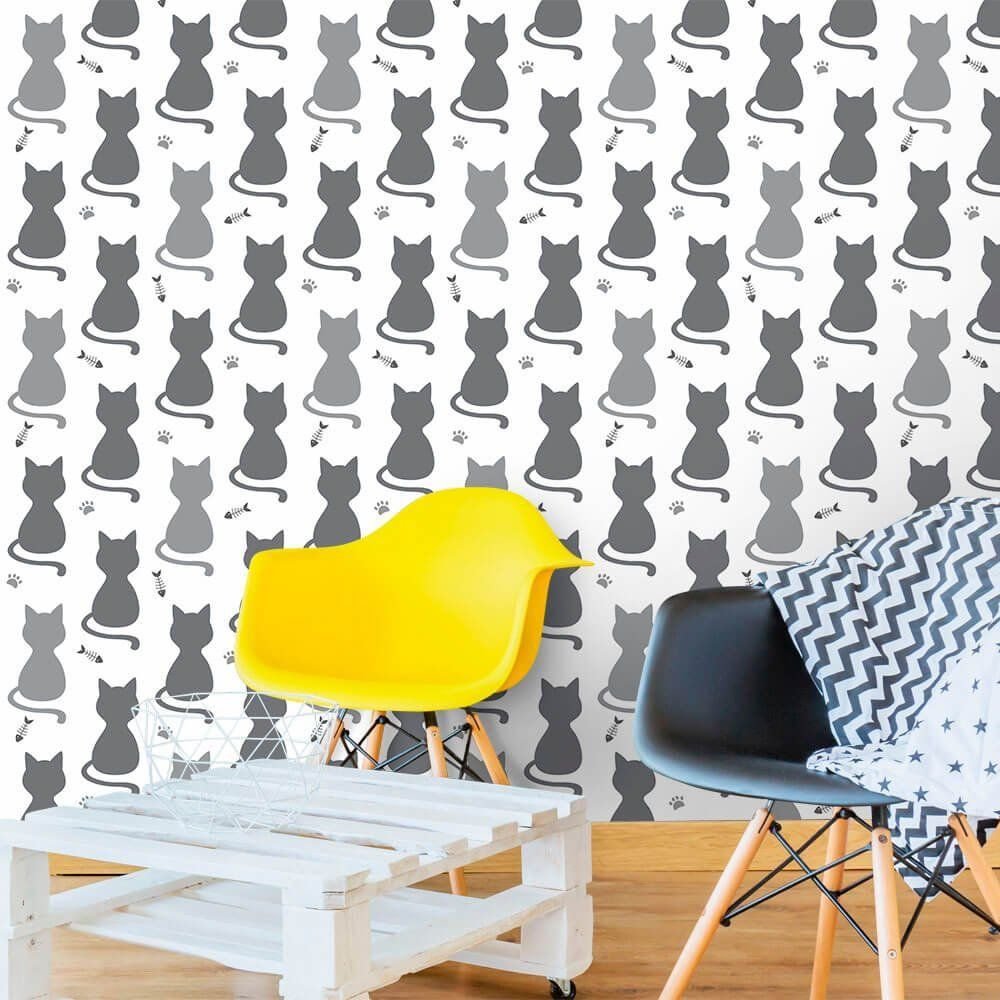 O Papel de Parede Cats Gray é fabricado em adesivo vinil fosco 3M, autocolante e com excelente qualidade de impressão. Não precisando de cola.