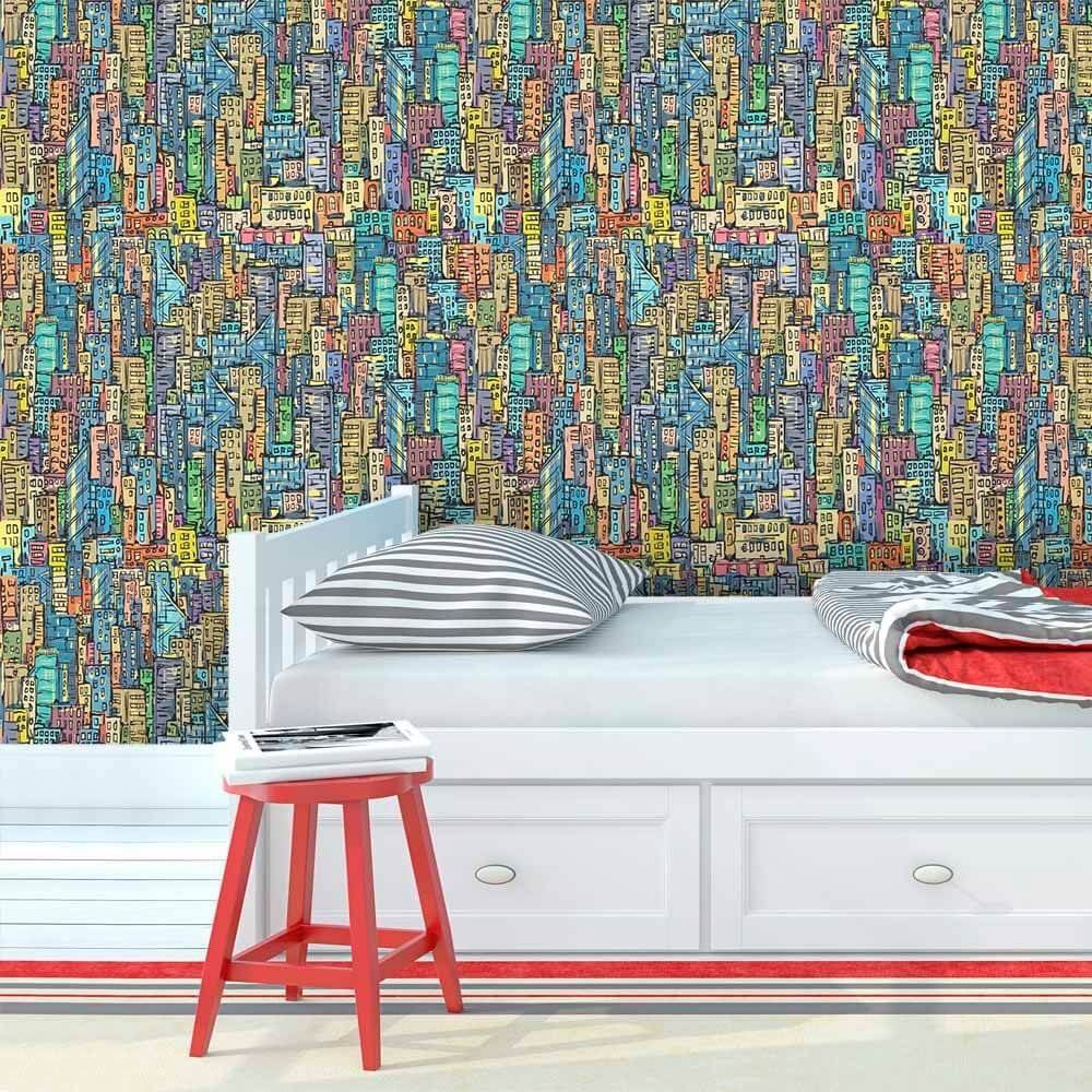 O Papel de Parede Cidade Colorida é fabricado em adesivo vinil fosco 3M, autocolante e com excelente qualidade de impressão. Não precisando de cola.