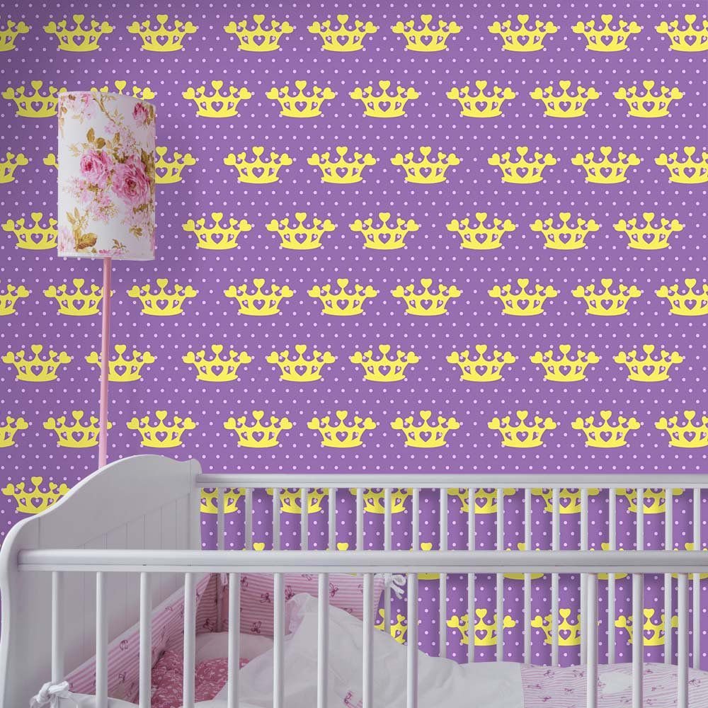 O Papel de Parede Coração de Princesa é fabricado em adesivo vinil fosco 3M, autocolante e com excelente qualidade de impressão. Não precisando de cola.