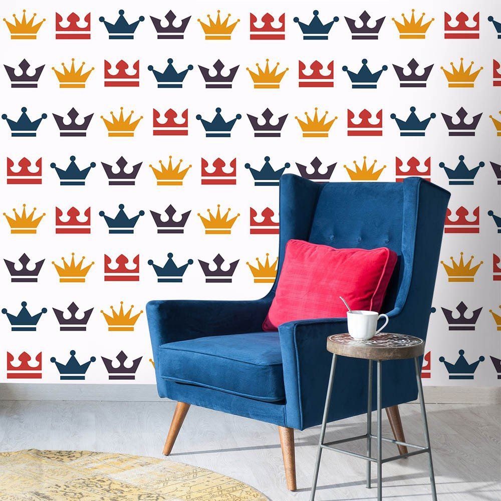 O Papel de Parede Coroas é fabricado em adesivo vinil fosco 3M, autocolante e com excelente qualidade de impressão. Não precisando de cola.