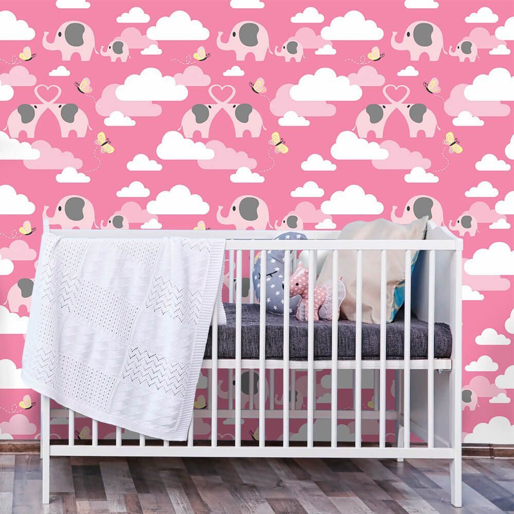 O Papel de Parede Elefantes nas Nuvens é fabricado em adesivo vinil fosco 3M, autocolante e com excelente qualidade de impressão. Não precisando de cola.