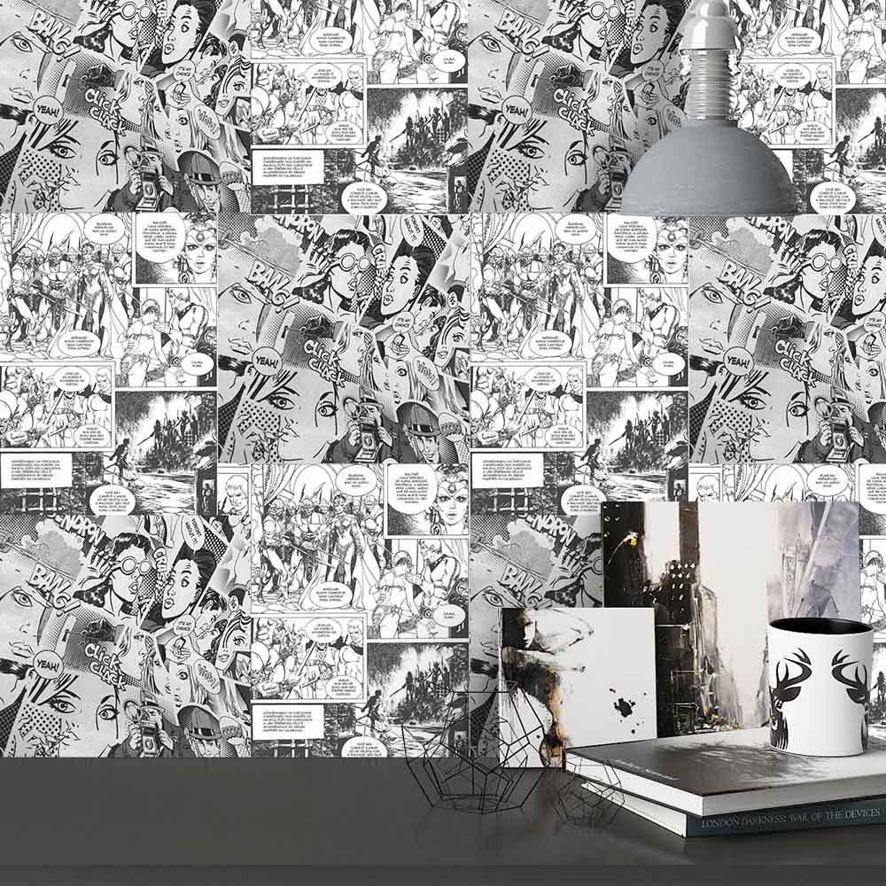 O Papel de Parede Gibi PeB é fabricado em adesivo vinil fosco 3M, autocolante e com excelente qualidade de impressão. Não precisando de cola.