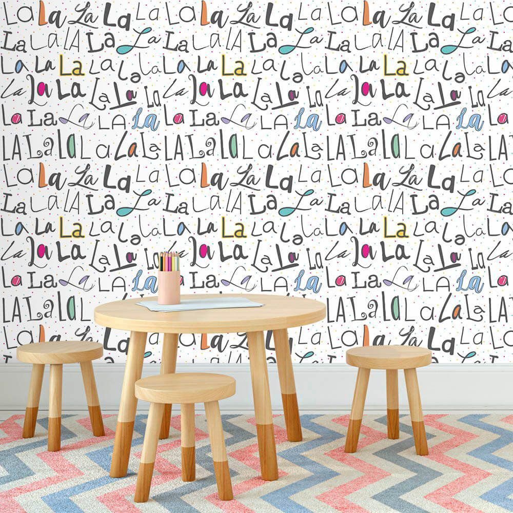 O Papel de Parede La La La Color é fabricado em adesivo vinil fosco 3M, autocolante e com excelente qualidade de impressão. Não precisando de cola.