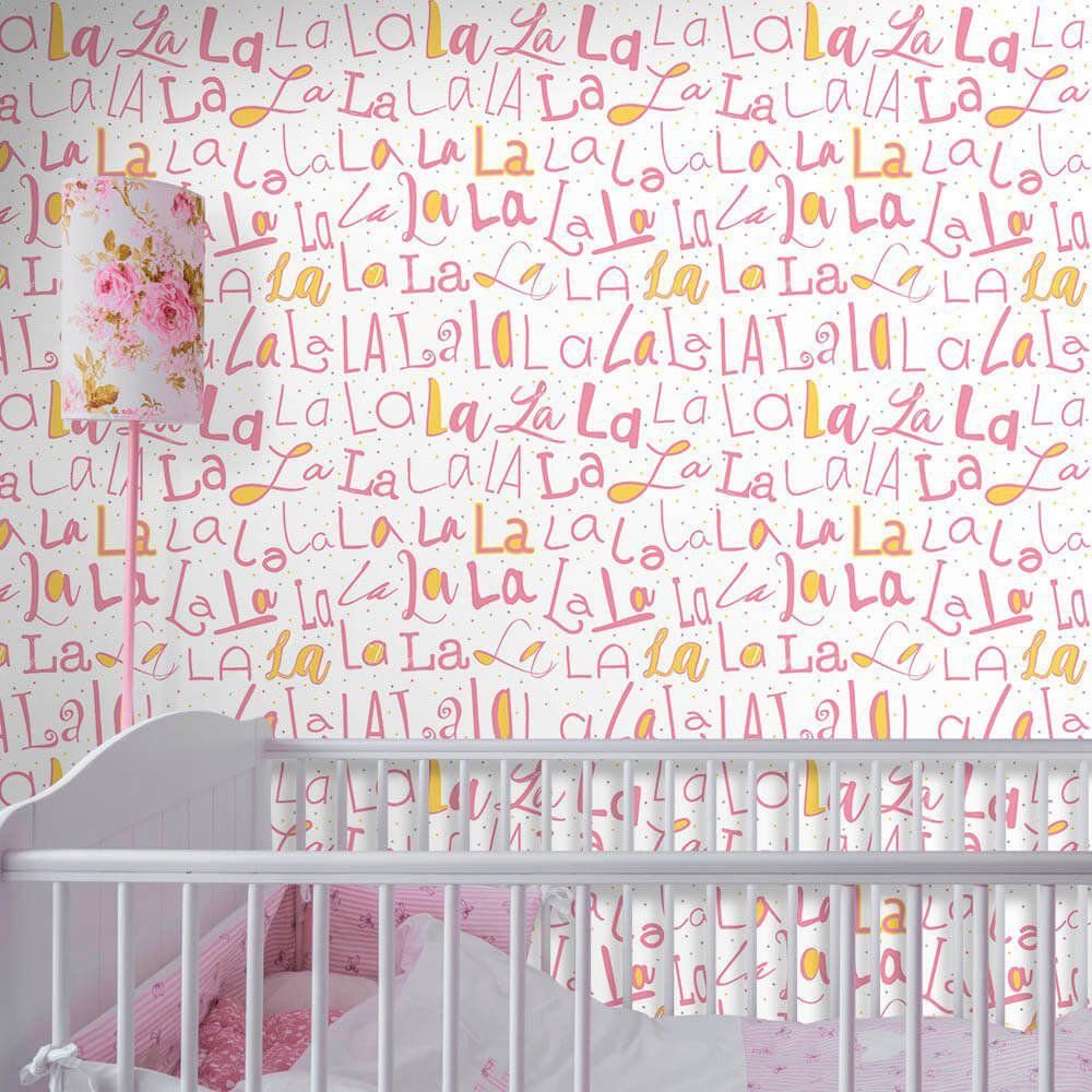O Papel de Parede La La La Girl é fabricado em adesivo vinil fosco 3M, autocolante e com excelente qualidade de impressão. Não precisando de cola.