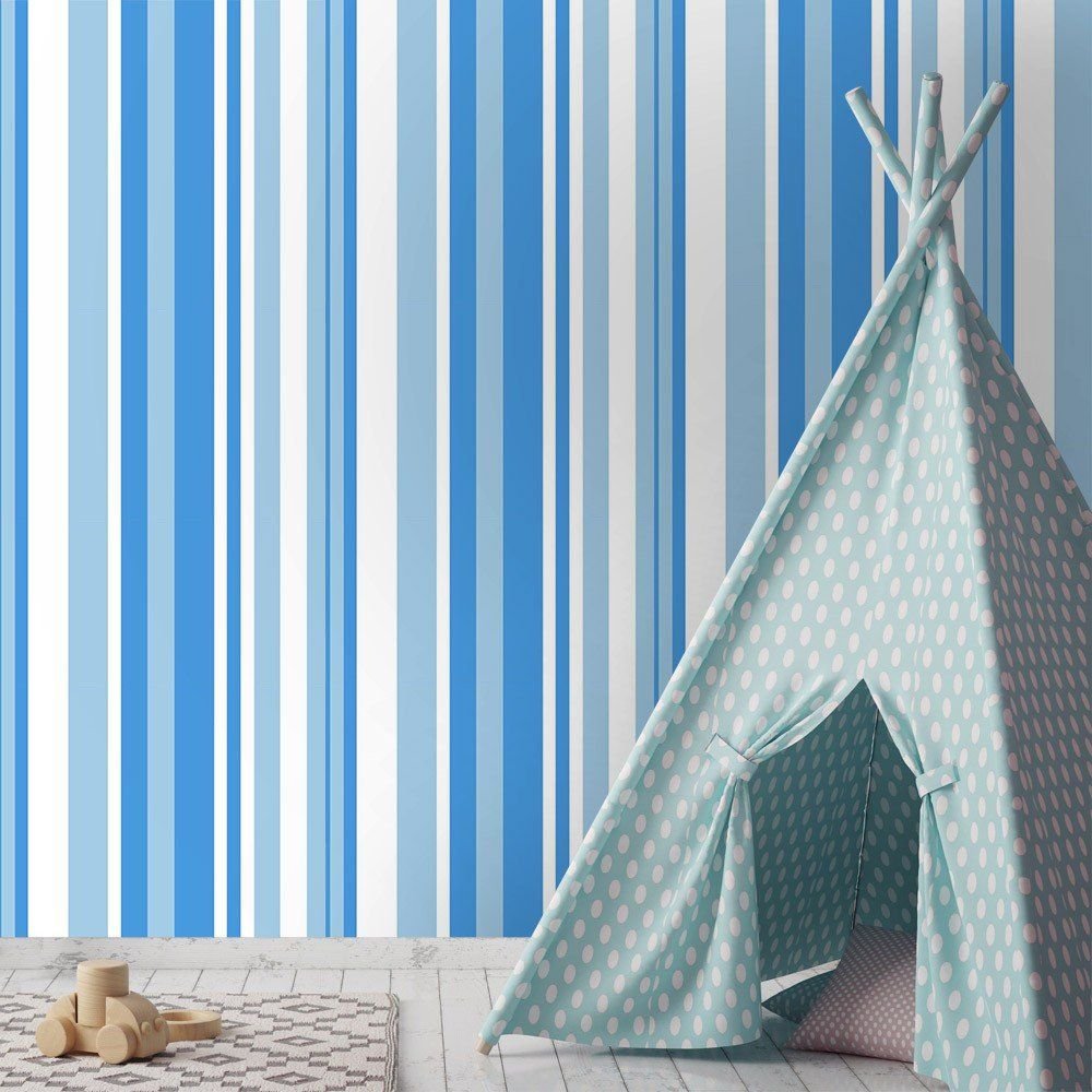 O Papel de Parede Listras Azuis é fabricado em adesivo vinil fosco 3M, autocolante e com excelente qualidade de impressão. Não precisando de cola.