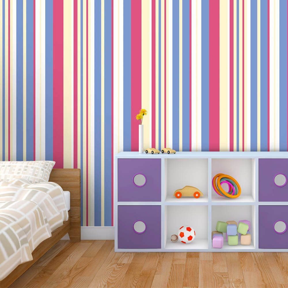 O Papel de Parede Listras Boy and Girl é fabricado em adesivo vinil fosco 3M, autocolante e com excelente qualidade de impressão. Não precisando de cola.