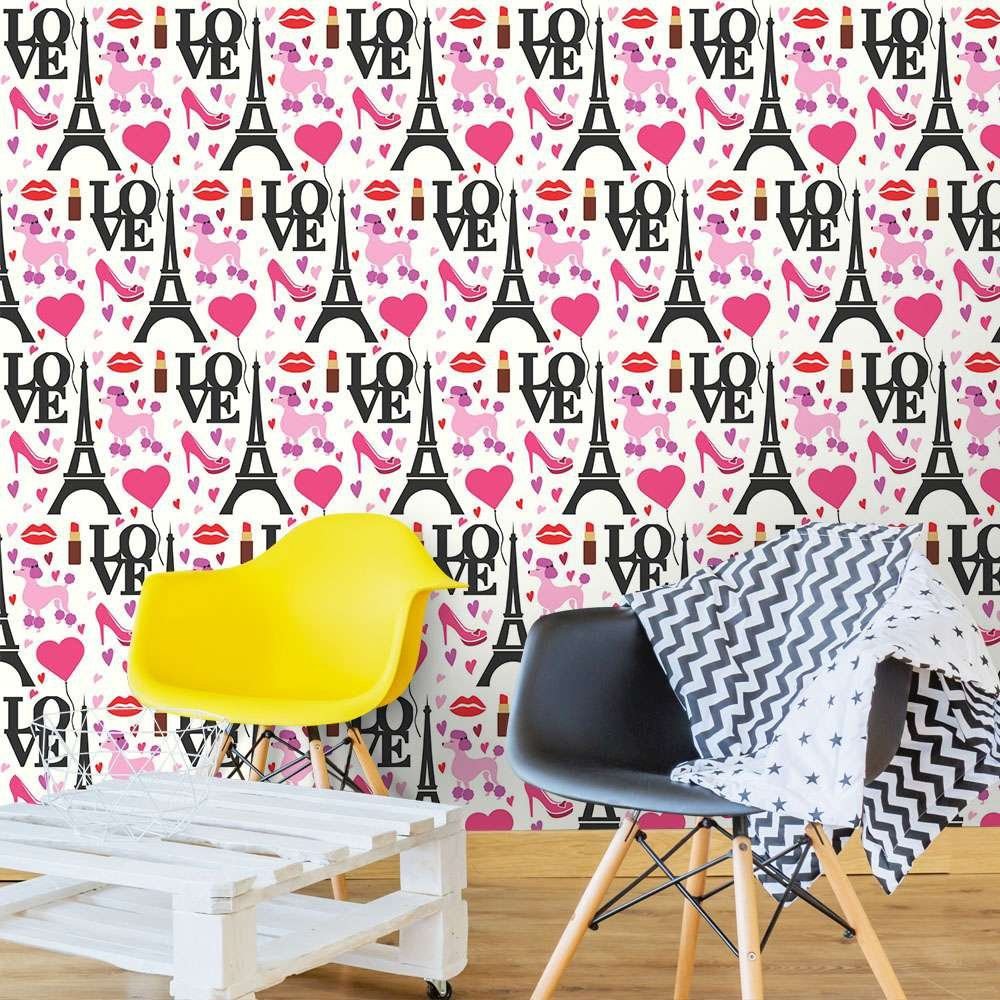 O Papel de Parede Love Paris é fabricado em adesivo vinil fosco 3M, autocolante e com excelente qualidade de impressão. Não precisando de cola.