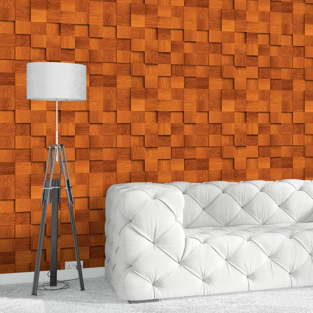 O Papel de Parede Madeira Cubos Nozes é fabricado em adesivo vinil fosco 3M, autocolante e com excelente qualidade de impressão. Não precisando de cola.