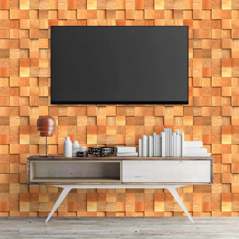 O Papel de Parede Madeira Cubos Rústico é fabricado em adesivo vinil fosco 3M, autocolante e com excelente qualidade de impressão. Não precisando de cola.