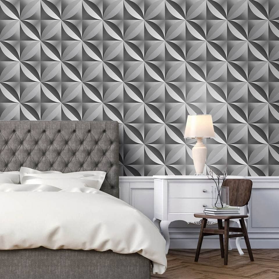 PAPEL DE PAREDE FLOWERS 3D GRAY