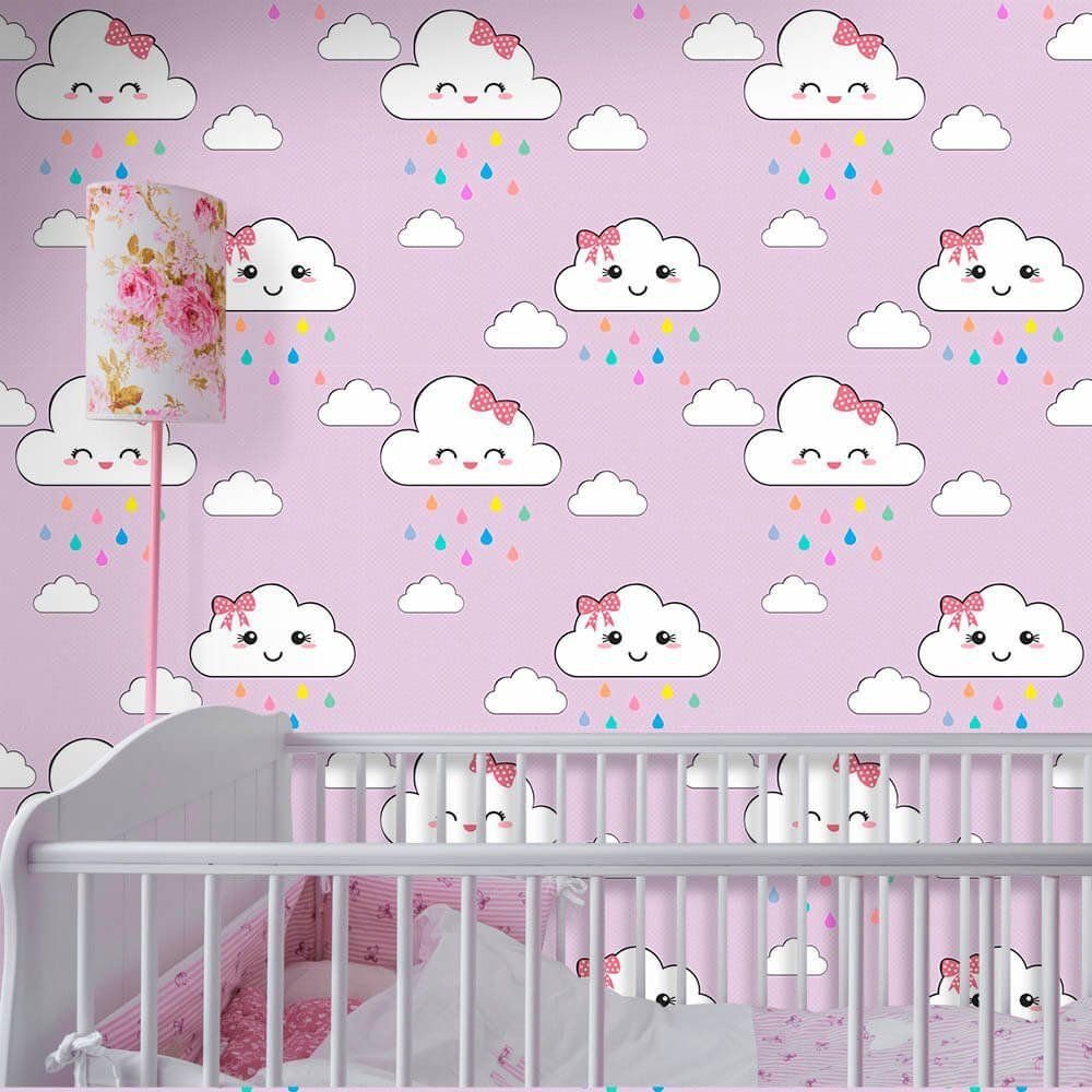 O Papel de Parede Nuvens Cute Lilás é fabricado em adesivo vinil fosco 3M, autocolante e com excelente qualidade de impressão. Não precisando de cola.
