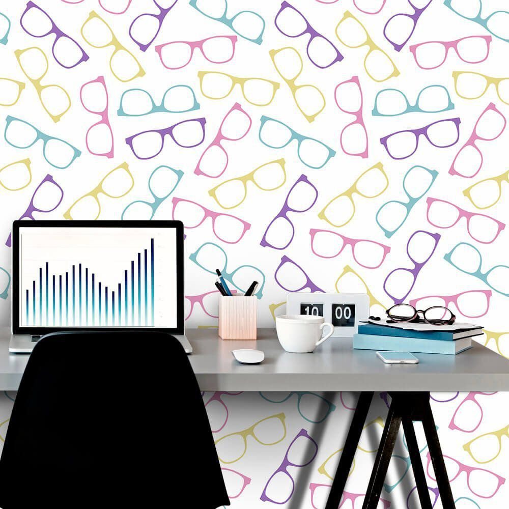 O Papel de Parede Óculos Geek Color é fabricado em adesivo vinil fosco 3M, autocolante e com excelente qualidade de impressão. Não precisando de cola.