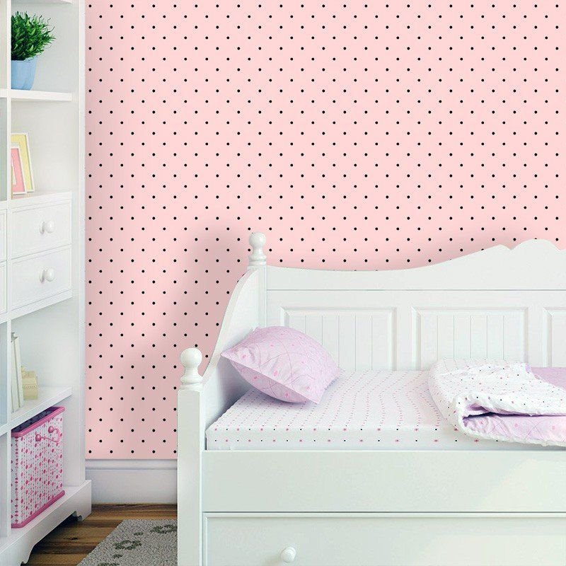 O Papel de Parede Polka Dots é fabricado em adesivo vinil fosco 3M, autocolante e com excelente qualidade de impressão. Não precisando de cola.