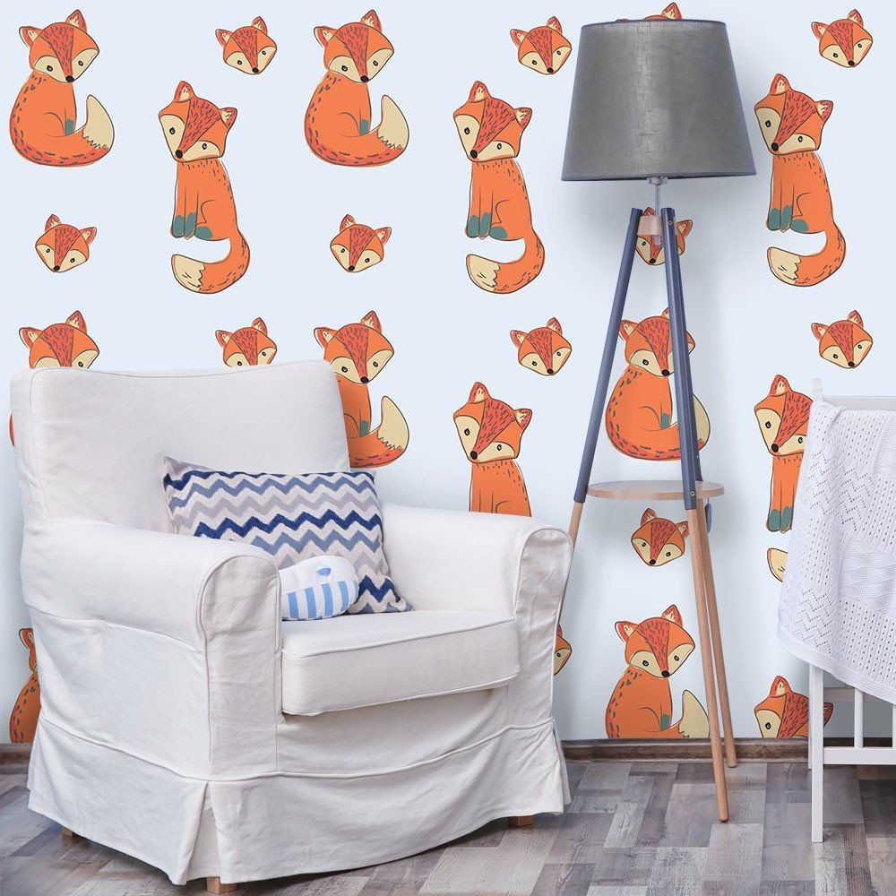 O Papel de Parede Raposinhas é fabricado em adesivo vinil fosco 3M, autocolante e com excelente qualidade de impressão. Não precisando de cola.