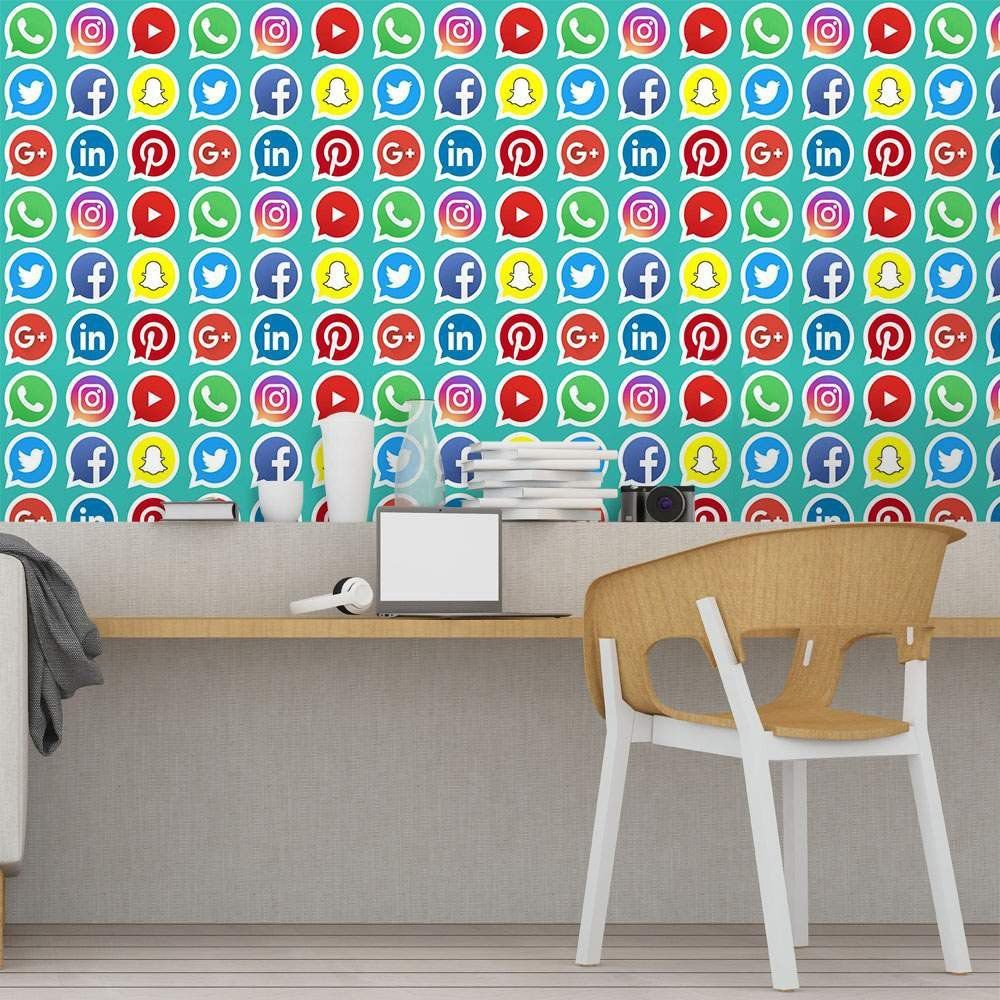 O Papel de Parede Redes Sociais é fabricado em adesivo vinil fosco 3M, autocolante e com excelente qualidade de impressão. Não precisando de cola.