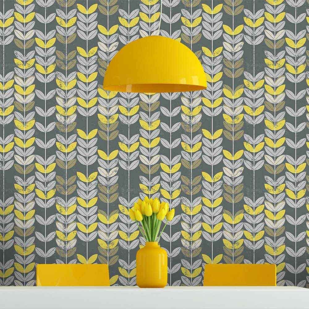 O Papel de Parede Retrô green leaves é fabricado em adesivo vinil fosco 3M, autocolante e com excelente qualidade de impressão. Não precisando de cola.