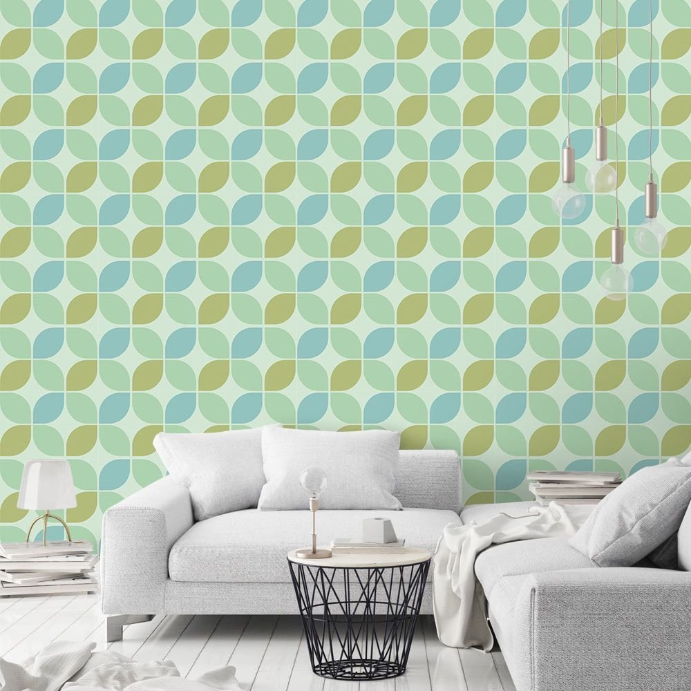 O Papel de Parede Simétrico Verde é fabricado em adesivo vinil fosco 3M, autocolante e com excelente qualidade de impressão. Não precisando de cola.