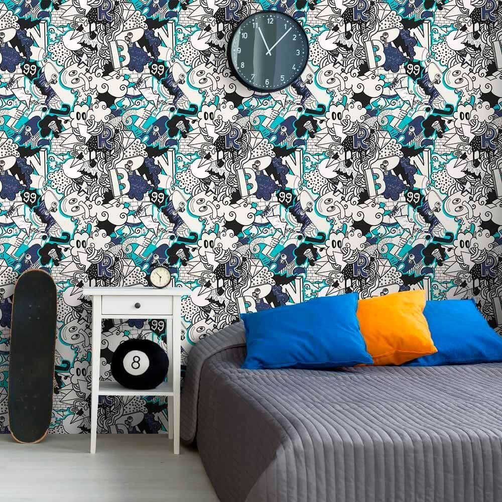 O Papel de Parede Skateboard Grafite é fabricado em adesivo vinil fosco 3M, autocolante e com excelente qualidade de impressão. Não precisando de cola.