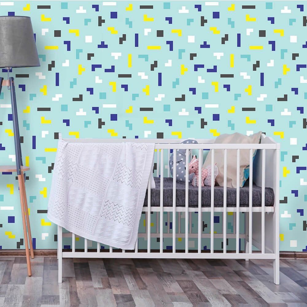 O Papel de Parede Tetris Soft é fabricado em adesivo vinil fosco 3M, autocolante e com excelente qualidade de impressão. Não precisando de cola.