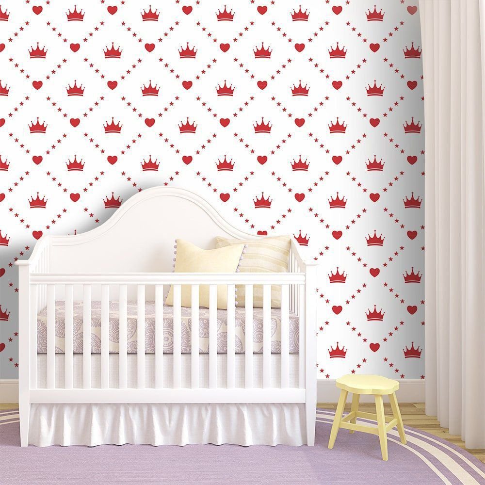 O Papel de Parede Tiara da Princesa Red é fabricado em adesivo vinil fosco 3M, autocolante e com excelente qualidade de impressão. Não precisando de cola.