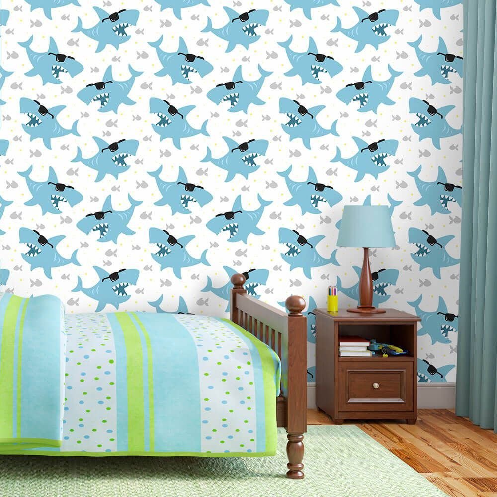 O Papel de Parede Tubarões Óculos Basic é fabricado em adesivo vinil fosco 3M, autocolante e com excelente qualidade de impressão. Não precisando de cola.