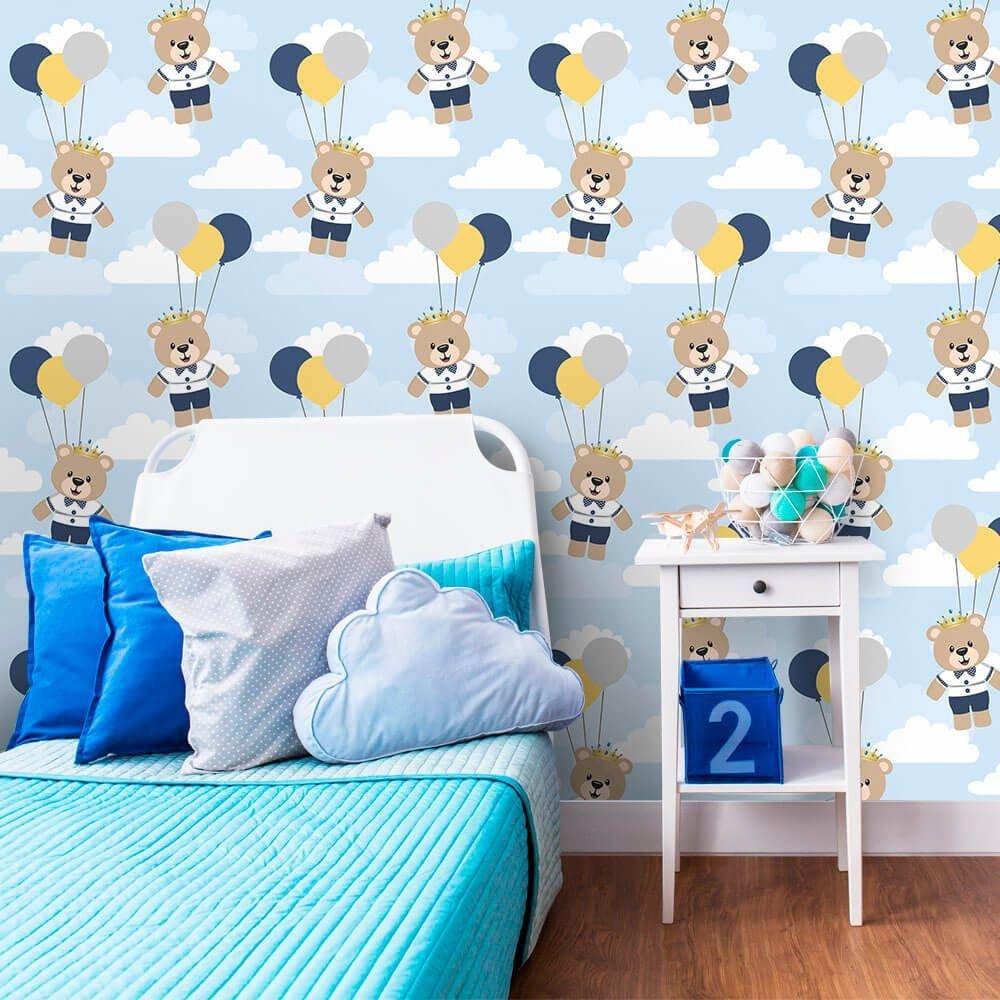 O Papel de Parede Ursinhos Jejé é fabricado em adesivo vinil fosco 3M, autocolante e com excelente qualidade de impressão. Não precisando de cola.