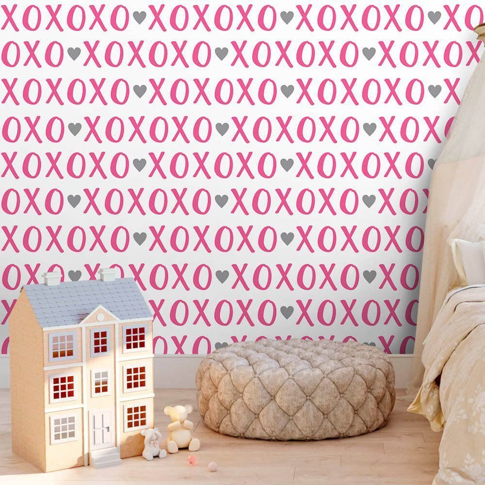 O Papel de Parede Xoxo Pink é fabricado em adesivo vinil fosco 3M, autocolante e com excelente qualidade de impressão. Não precisando de cola.