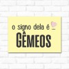 A Placa Decorativa O Signo dela é Gêmeos é uma ótima alternativa para deixar seu ambiente mais bonito.